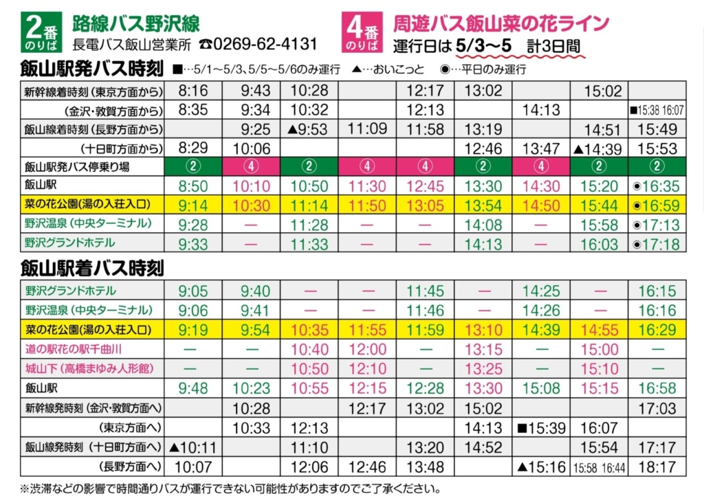 周遊バスの運行は5月3日〜5日のみです。